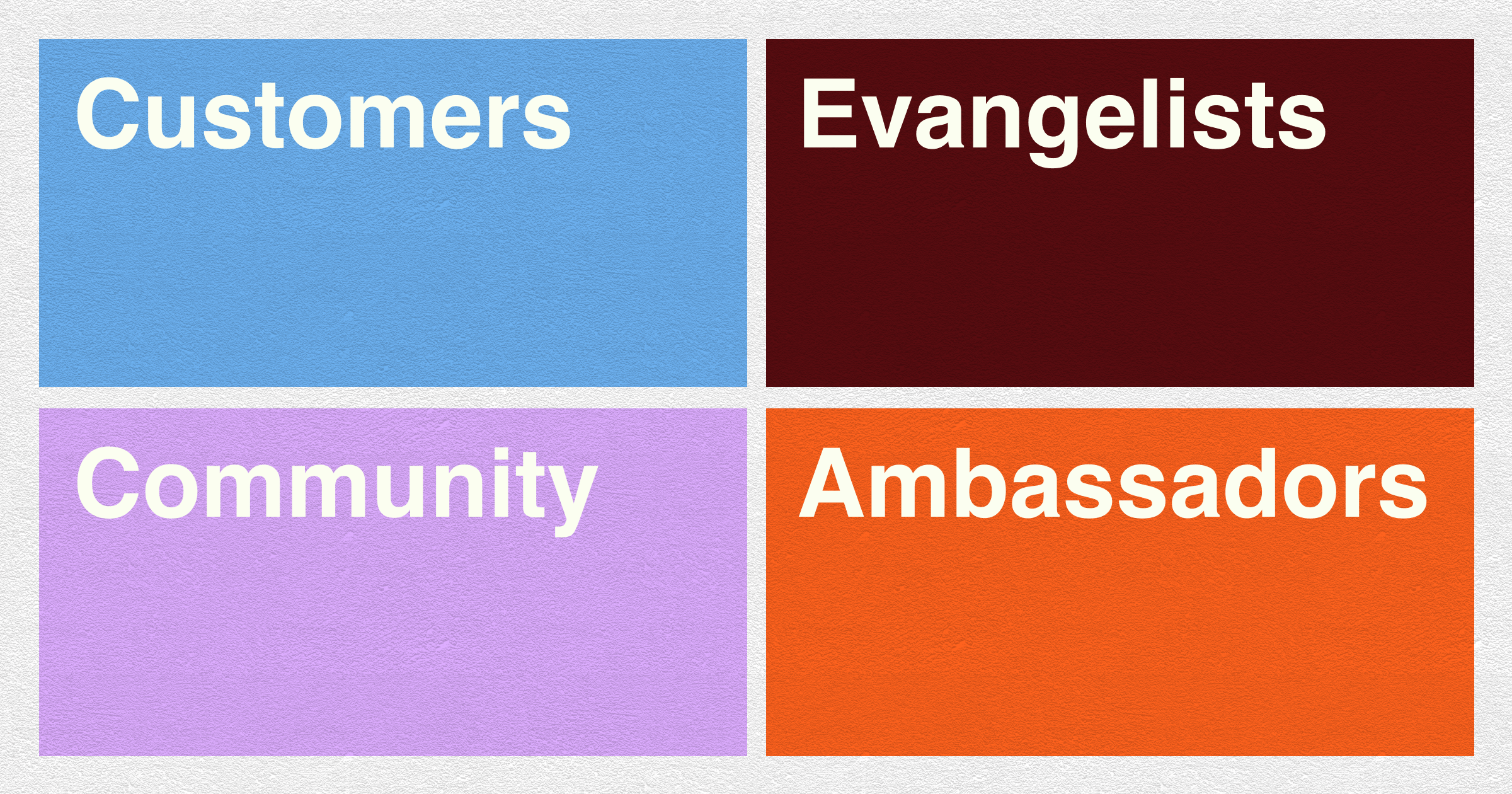 So if fans are their own thing entirely, I think it hovers over the entire framework. NOT A BOX. Like a cute Lisa Frank inspired cloud. Fans can be a customer, yes. But they don’t have to be. Fans can evangelize, but they don’t have to. Fans can be community members and I believe they need to be a fan before they’re a community member.